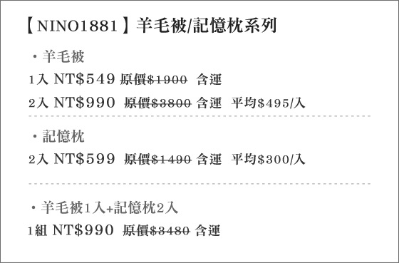 宅配知名美國品牌,台灣精製,進口高級羊毛、布料,還有符合人體工學記憶枕,肩頸不痠痛,給您最柔軟的溫暖!